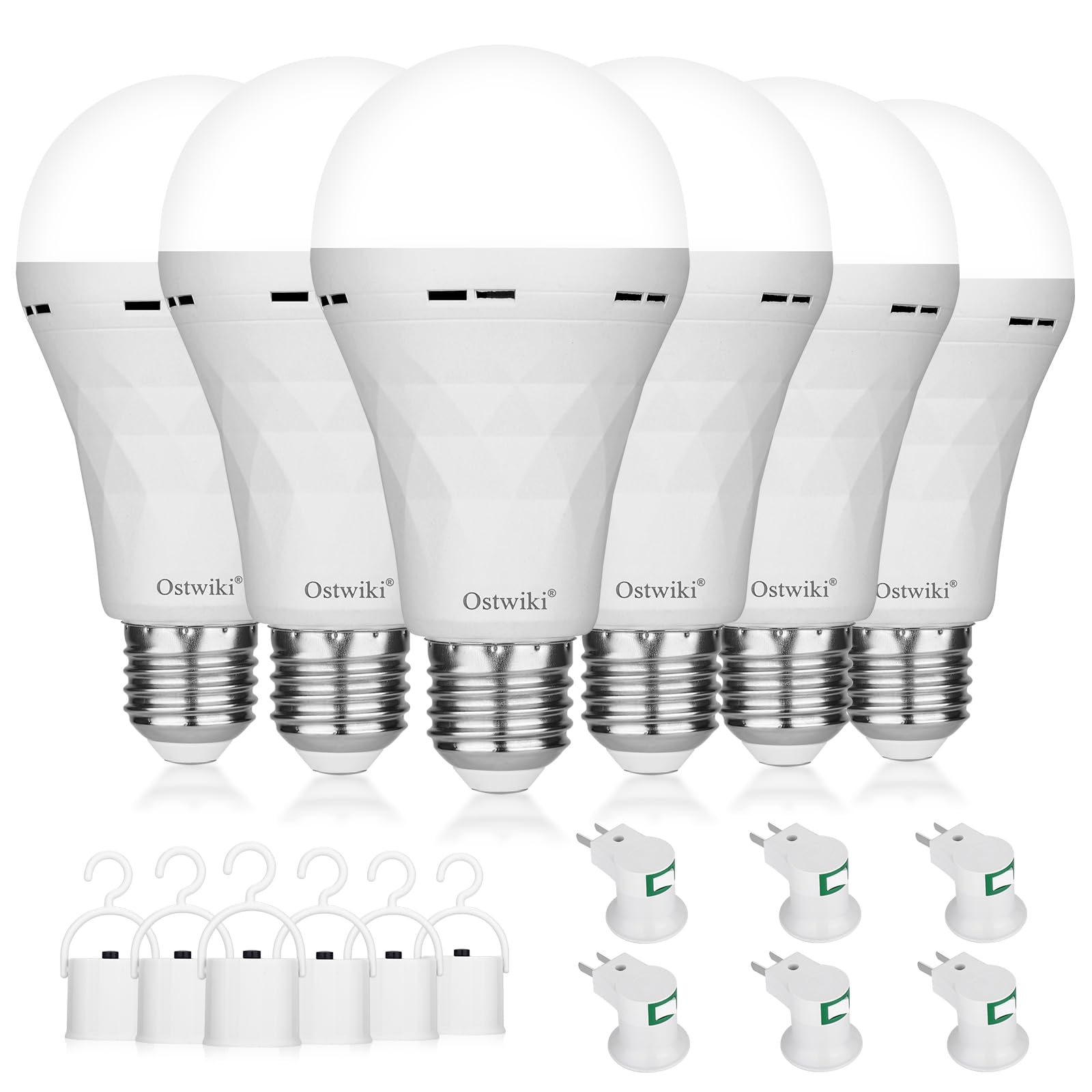 Emergency Rechargeable Light Bulbs,6 Pack Battery Operated Backup Light Bulb for Power Outage Camping Outdoor Hurricane 9W E27 8500K 1200mAh White Equivalent Self-Charging LED Light Bulbs