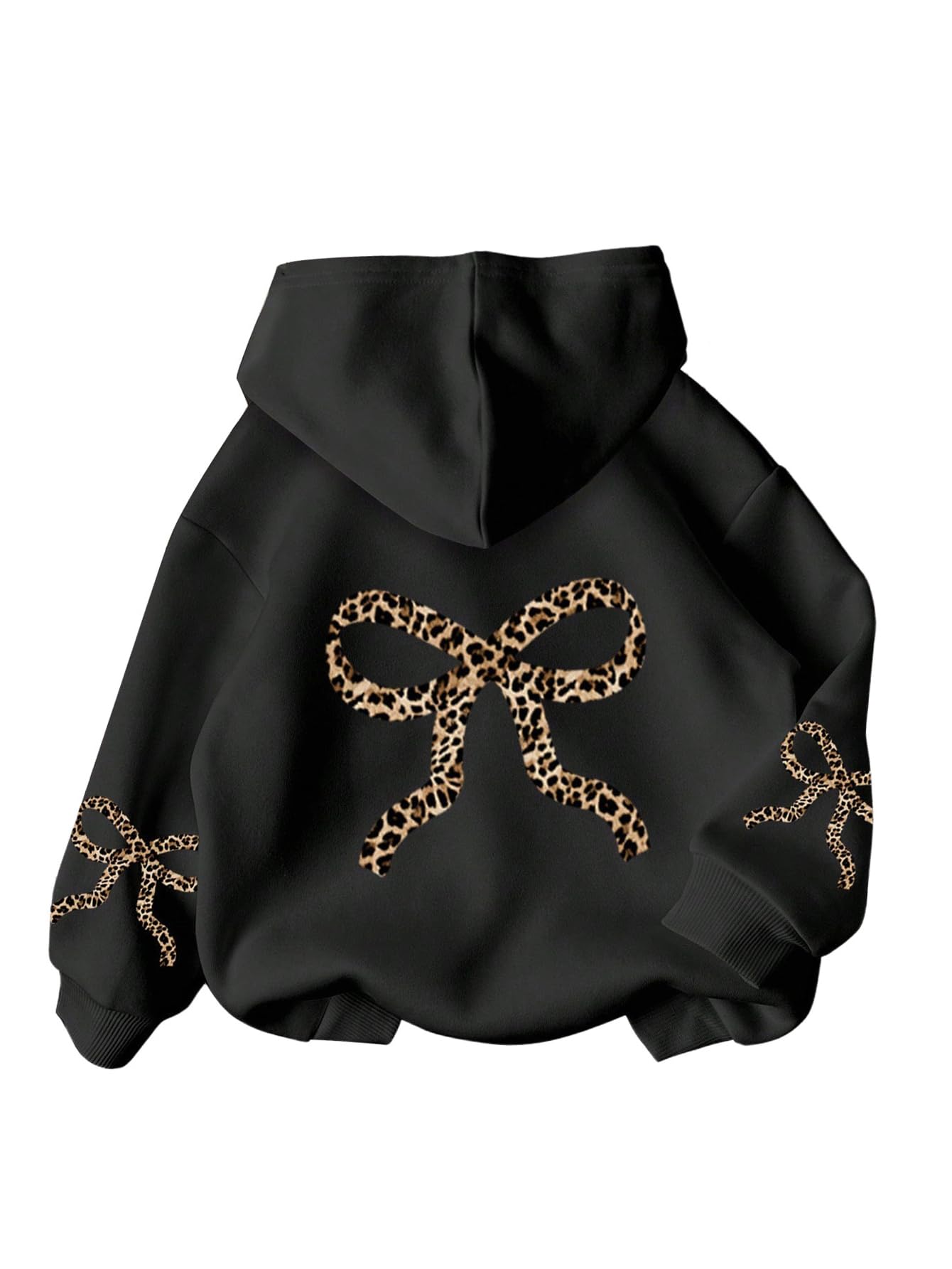 RoseSeek Girl's Bow Cheetah Leopard Hoodies Long Sleeve Pullover Tops Preppy Cute Sweatshirts Hoodies Bow Black 11Y
